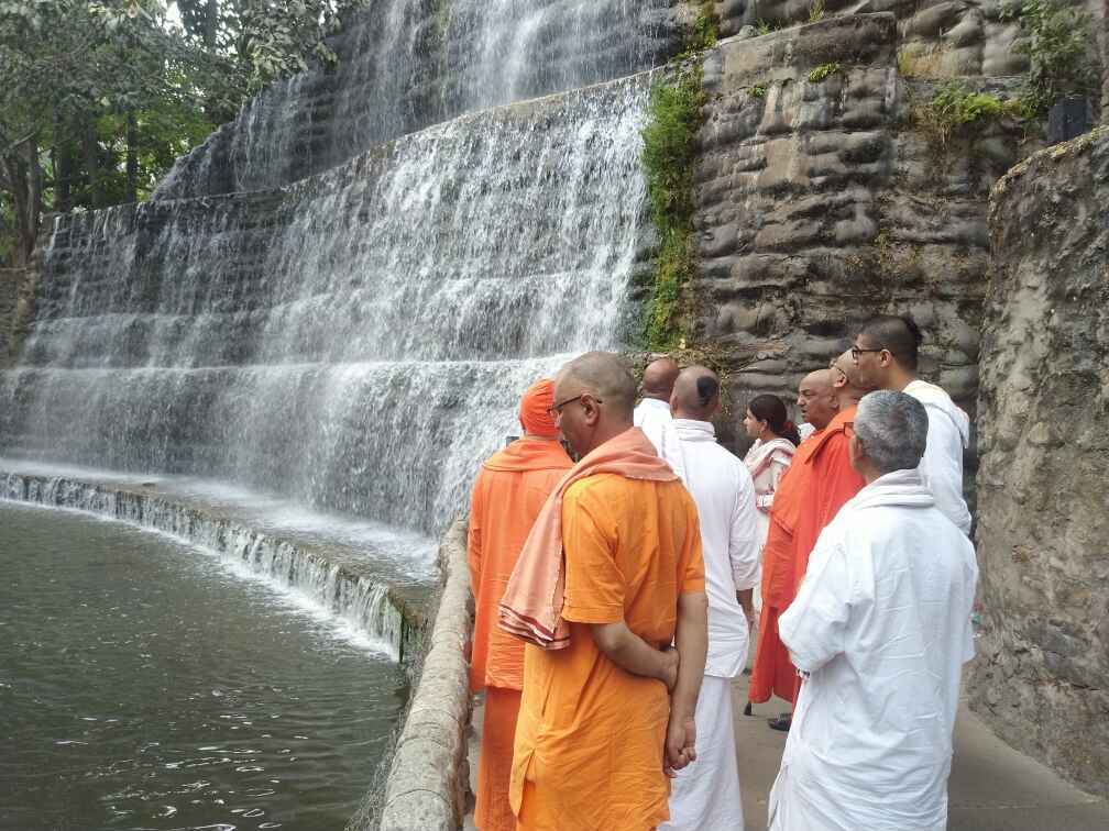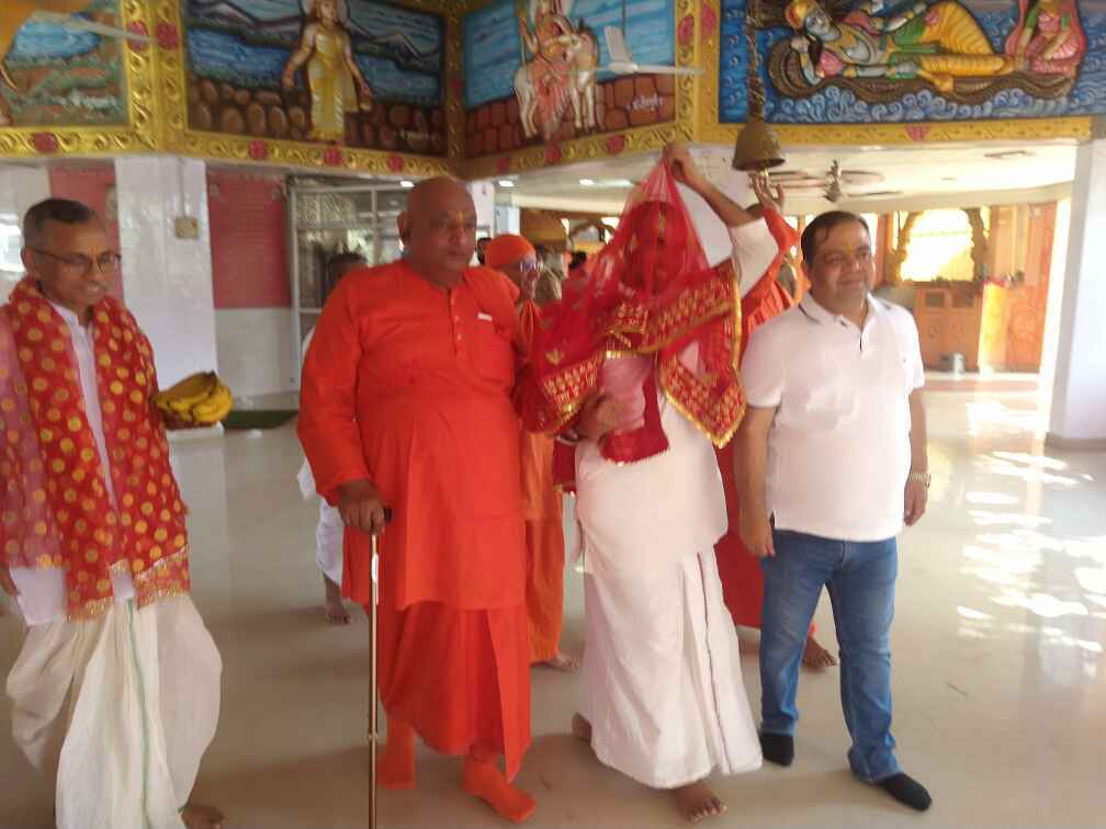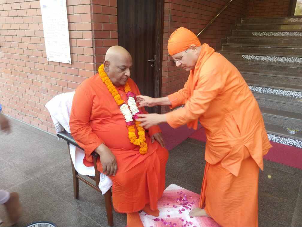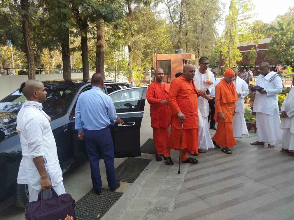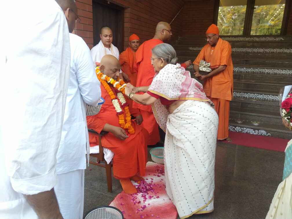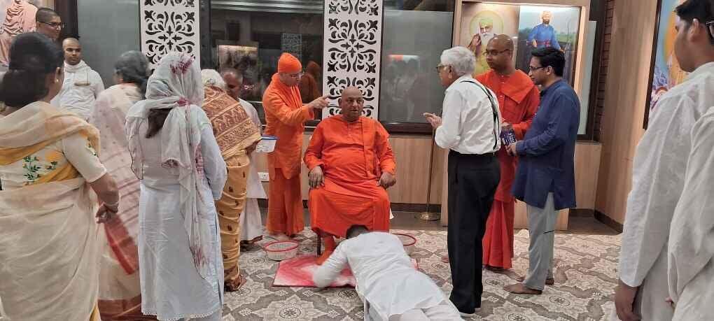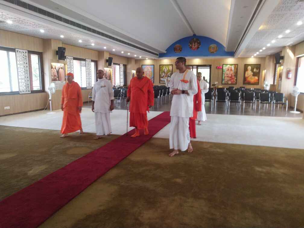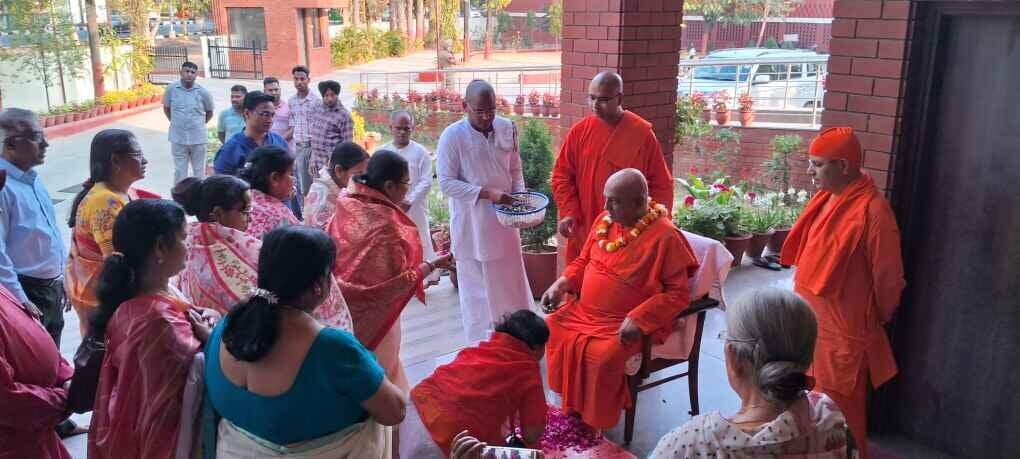 ·Around 30 devotees along with the monastics welcomed Revered Maharaj with veda mantra, garlands and flowers.