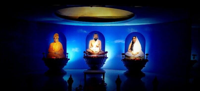 Sri Ramakrishna is worshipped in the temple following the mantras and procedures systematized by Swami Ramakrishnananda. Daily Puja of Sri Ramakrishna, Sri Sarada Devi and Swami Vivekananda is performed in the Meditation Hall from 8.30 am to 9.30 am. The shrine is open from morning 5.00 am to 12.00 noon and evening 3.30 pm (winter) / 4.00 pm (summer) to 8.30 pm (summer) / 9.00 pm(winter). Aratrikam or evening prayers start at 6.30 pm (winter) / 7.00 pm (summer). Immediately after Aratrikam there will be bhajans on all week days and special bhajans for one hour on Sundays.